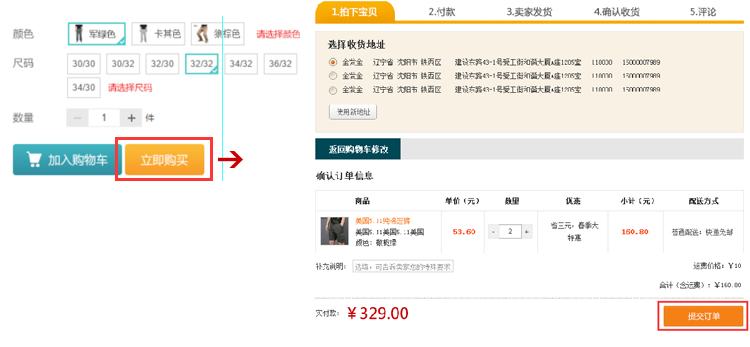 2. 选择立即购买按钮,提交订单。