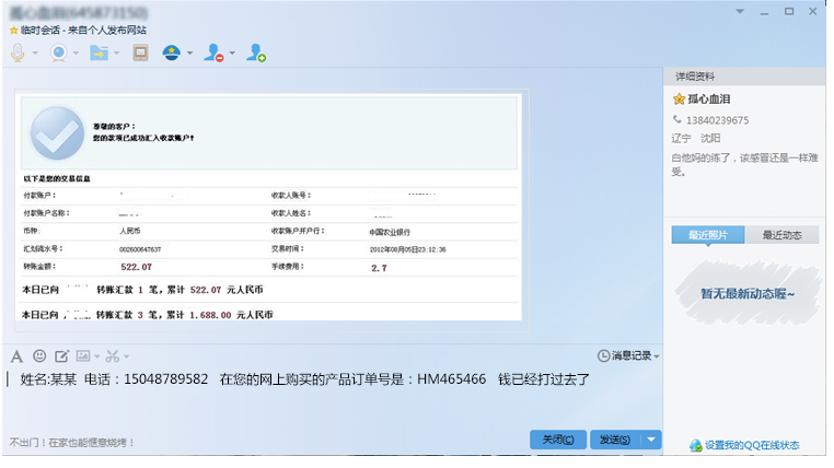 4. 将汇款凭证通过QQ这个途径发给我们,我们会立即发货,您等待收货就可以了,您可以通过我的订单查 看您的货物进程。