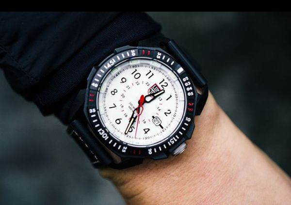 表盘的刻度与Luminox大部分产品的时标不一样,斯科特·卡塞尔1550系列采用了白色圆点作为时标刻度,鲜明夺目,在任何极端情况下可以确保腕表的可读性。